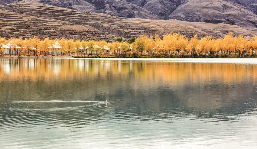 除了巍峨的雪山與彩林作伴,不少越冬的候鳥也飛抵珠牡湖。金色彩林倒映在清澈如鏡的湖面上,不時(shí)有候鳥游過,激起層層漣漪,為珠牡湖增添了不少生機(jī)與趣味。
