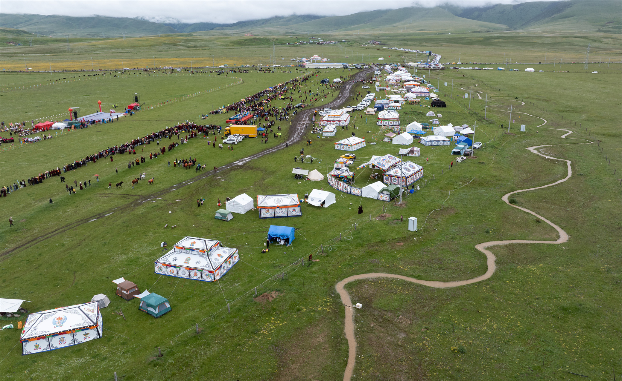 7月27日,四川省甘孜藏族自治州白玉縣第二屆“盛德白玉·草原最?!编l(xiāng)村民俗文化活動(dòng)在阿察鎮(zhèn)日通草原啟幕。文藝匯演、牦牛選美、擠奶比賽、賽馬等活動(dòng)在接下來兩天里將輪番上演,吸引當(dāng)?shù)啬撩窈捅姸嘤慰颓皝碛^賞。