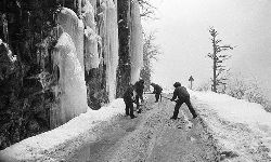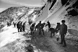 一九九七年十一月二十四日,連續(xù)多日大雪,把整個二郎山裹得嚴嚴實實,白茫茫一片。陣陣山風吹過,大霧就像瀑布一樣,從山頂直往下翻涌傾瀉。 一大早,州交通局打冰除雪排險的干部職工就從二郎山管理站直奔山埡口。載有防滑砂的大貨車穿迷霧,繞山梁,向山頂埡口疾馳。由于氣溫太低,霧又大,車上的擋風玻璃很快就結(jié)下了冰,路面打滑非常嚴重。前面車輛堵了起來,排險人員只好下車步行。 大霧彌漫,能見度很底,陰霾的天空又飄起了紛紛揚揚的雪花,剌骨的寒風陣陣襲來,只聽見車蓬布在風中“嗶剝”作響,卻看不見前面到底堵了多少車。排險人員只好相互攙扶踩著冰滑的邊路艱難地向行。好不容易來到堵在最前面的車子面前。原來是一輛載著原木的東風牌大貨車側(cè)滑在公路上,把整個公路堵死了。 局領(lǐng)導當即指揮大家用鋼釬、鐵鎬和鋤頭處理冰道,沒有撮箕,大家借來加水桶裝運冰雪……氣溫仍在急劇下降,剛從雪堆里刨出來的路,又被結(jié)起一層冰,就像地面上澆上了油,這就是冰雪道上有名的“桐油凌”。 有二位老同志不顧年老體弱,積極參與打冰除雪,一個在打冰時,被彈起的冰碴把腦門劃了一個口子,鮮血直往外冒。有人想幫他包扎,他堅決不干,自己就用手帕按住,把帽子向下拉蓋住傷口就算了。血從手帕中浸透出來,與眉毛上的冰凌結(jié)在一起。氣溫太低,冰層太厚,十字鎬每挖一下,多數(shù)情況下也就是挖下一個白點而已。不一會兒,另一位老同志已是滿頭大汗,大家勸他休息一下,他卻說:趁著現(xiàn)在雪不是太大,早點把主道上的冰雪多除點,過往二郎山的車輛就多一份安全。 排險人員的手凍紅了,刨冰雪碰傷的指頭還流著鮮血,身上蒸發(fā)的熱氣,把衣領(lǐng)口、袖子口和褲子口結(jié)成了冰,可是,誰也沒有吭一聲。 ……受堵車輛終于向前開動了。 風,越刮越猛,雪,越來越大。 防滑車在冰雪道上艱難地向前爬行著,車箱上面的職工們揮舞的洋鏟向路面撒著防滑砂。一路上風絞雪,防滑車象一頭不聽使喚的牛,顛簸、亂竄,好不容易才來到260(二郎山最險處),對這里“桐油凌”路面進行重點防滑處理后,防滑車又返回來,開始向山頂進發(fā)……風雪二郎山上打冰除雪、防滑排險,看似沒有驚天動地的壯舉,身臨其景才知其艱難辛苦。難怪當年每每經(jīng)過二郎山冰天雪地奇險路段的車,都會向風雪中屹立路邊的交通系統(tǒng)排險保暢通的職工們鳴笛致敬,風雪中的那份情彌足珍貴。 川藏線上的老司機傳下來一首傷心的順口溜:“車過二郎山,如闖鬼門關(guān),萬幸不翻車,也要凍三天!”其險峻實為罕見,尤其是途經(jīng)二郎山260(公路公樁)處,曾被淡虎色變的人稱為“鬼招手”的險路段。 1983年1月3日,有著安全行車44萬公里記錄的一位駕駛員開著輛嶄新的東風牌貨車,同行還有兩名職工,夜行二郎山,在彌天大霧中神秘地“失蹤”了。十五天后,搜山的人才用望遠鏡看到260公里路樁處的山崖下,有一塊汽車破篷布掛在樹枝,猶如招魂的凄厲幌幡在冷風中招搖晃動。鋼纜繩吊著搜山的人下到崖下400米深處的谷底。扒開一座座雪堆,叫人汗毛倒豎:雪堆下,盡是廢大梁、爛車廂、銹車頭和支離破碎的汽車,足有一個汽車連!一輛不知埋了多久的卡車廂里牛肉已腐爛,駕駛室里坐著三具發(fā)黑的僵尸……其狀慘不忍睹!