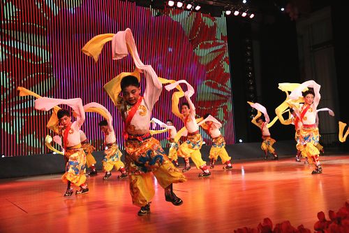 在歡快的音樂(lè)聲中,《師恩如歌》拉開(kāi)了“園丁頌”文藝晚會(huì)的序幕。悠揚(yáng)的歌聲,歡快的舞蹈,熱烈的掌聲,演繹著同一個(gè)主旋律:“老師,是您為我們開(kāi)啟了智慧的大門(mén),加減乘除,算不盡您做出的貢獻(xiàn)!詩(shī)詞歌賦,頌不完對(duì)您的感激!千言萬(wàn)語(yǔ)只能匯成一句話:老師,您辛苦了,我們永遠(yuǎn)感謝您!”晚會(huì)以“園丁頌”為主題,分為“播種希望”、“愛(ài)的光芒”、“九月禮贊”三個(gè)篇章。歌曲《圓夢(mèng)中國(guó)》、情景劇《守望白云》、舞蹈《老師親,媽媽親》等13個(gè)節(jié)目先后上演。一首首膾炙人口的歌曲,唱出了對(duì)人民教師的無(wú)限深情,一個(gè)個(gè)激情昂揚(yáng)的舞蹈,道出了對(duì)人民教師的萬(wàn)般感激。旋律優(yōu)美、歡快熱烈、精彩紛呈的晚會(huì)深深地吸引了現(xiàn)場(chǎng)觀眾的眼球。一聲聲發(fā)自內(nèi)心的問(wèn)候,一句句來(lái)自心靈的祝福,將晚會(huì)一次次推向高潮,晚會(huì)現(xiàn)場(chǎng)掌聲雷動(dòng)、歡呼雀躍,《吉祥祝?!犯栉璞硌轂檎_(tái)晚會(huì)畫(huà)上了一個(gè)圓滿的句號(hào)。