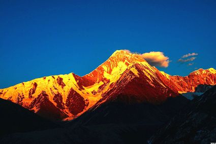 貢嘎山有“蜀山之王”的美稱,在這里,你可以看見日照金山的美麗,也少不了浩瀚星空的斗轉(zhuǎn)星移讓人迷醉。當(dāng)然,日出時(shí)它的云海涌動(dòng)搭配著萬丈霞光的美麗,也是讓人美不勝收。