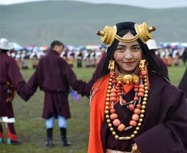 理塘穿盛裝“耍壩子”的藏族同胞