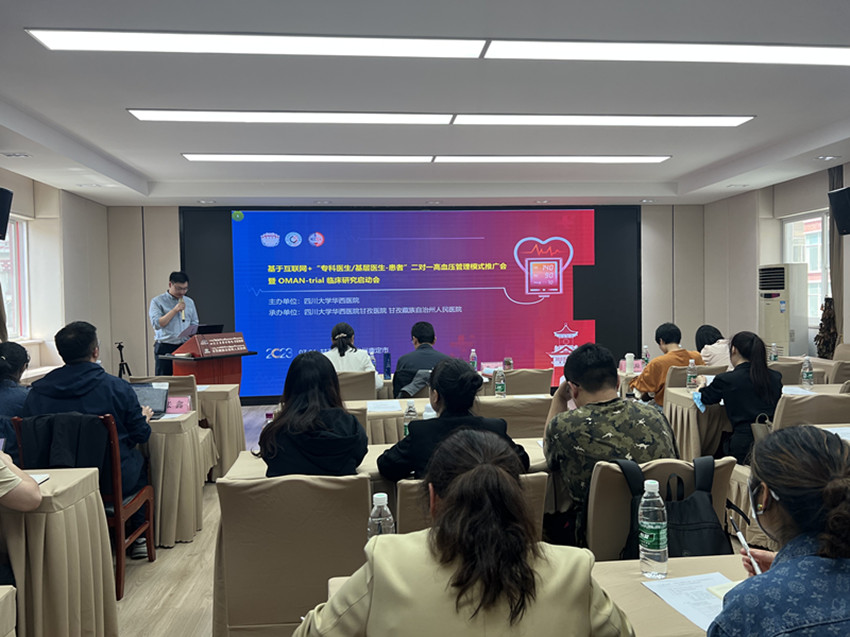 本網(wǎng)訊 7月1日,由四川大學(xué)華西醫(yī)院主辦、四川大學(xué)華西醫(yī)院甘孜醫(yī)院承辦的基于互聯(lián)網(wǎng)+“專科醫(yī)生/基層醫(yī)生——患者”二對(duì)一高血壓管理模式推廣會(huì)暨OMAN-trial臨床研究啟動(dòng)會(huì)在康定舉行,來(lái)自四川大學(xué)華西醫(yī)院的專家們以學(xué)術(shù)講座與探討的形式,圍繞高血壓管理新模式和OMAN-trial臨床研究等相關(guān)內(nèi)容進(jìn)行詳細(xì)深入的探討,為廣大醫(yī)師帶來(lái)了一場(chǎng)豐富精彩的學(xué)術(shù)盛宴。