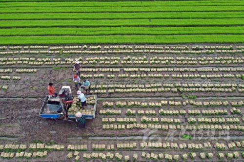 江蘇揚州的農村正使用機械起秧。 沈冬兵/人民圖片