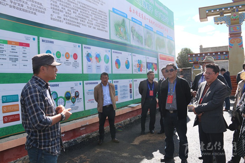 在康藏陽光現(xiàn)代農(nóng)業(yè)雙創(chuàng)中心聽取企業(yè)介紹。