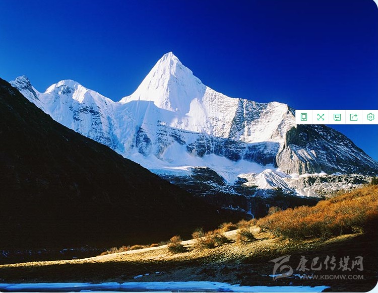 藏語意為:“文殊菩薩”,為“三怙主”雪山的南峰,海拔高度為5958米,在佛教中排在“三怙主”雪山之首。文殊菩薩在佛教中是有智慧的化身,雪峰像文珠師利用手中的智慧之俞直指蒼穹,冰晶玉潔的央邁勇傲然于天地之間。一九二八年,洛克先生在去南與稻成毗鄰的群山重嶺中,遙望見了央邁勇,被她圣治,高貴的氣質(zhì)折服,在他的日記中寫到“她(央邁勇)是我見到世界上最美的山峰?!?/span>