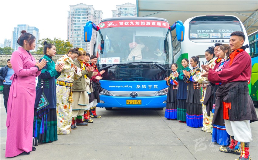景區(qū)直通車授牌儀式和自駕游車隊(duì)授牌儀式也是本次推介會(huì)的亮點(diǎn)。兩項(xiàng)儀式旨在進(jìn)一步方便廣大游客到九龍旅游,并開啟成都直通九龍旅游及運(yùn)輸融合發(fā)展的歷史征程?,F(xiàn)場,貼有“穿越藏彝走廊,體驗(yàn)民俗風(fēng)情”和“甘孜九龍旅游直通車”車標(biāo)的汽車引得不少人注目,有的還當(dāng)即向工作人員咨詢票價(jià)、路線。