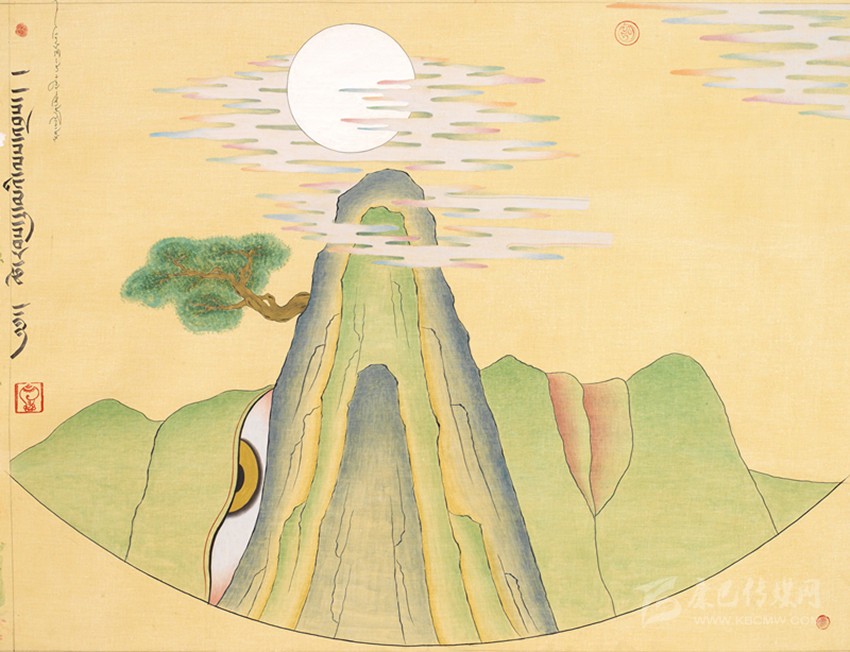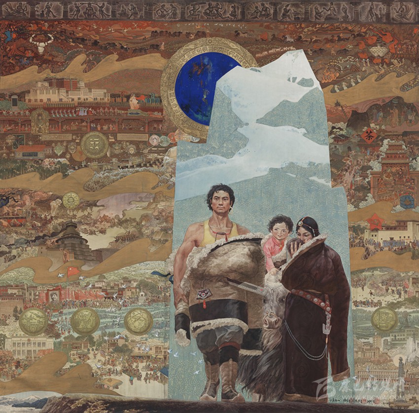 15世紀(jì)以來(lái),唐卡發(fā)展所恒定的兩個(gè)元素:一是平面構(gòu)圖的神佛之境,另一則是吸收大青綠山水精髓。正如DNA鏈的雙螺旋結(jié)構(gòu)一般,使唐卡繪畫在歷史時(shí)空中穿插縈繞,在雪域各地生根開(kāi)花。到了公元20世紀(jì)初,照片的高度寫實(shí)促使藏地畫家邁出了革新步伐,使得唐卡繪畫逐漸擺脫傳統(tǒng)束縛,開(kāi)啟了“人”的覺(jué)醒。衛(wèi)藏地區(qū)出現(xiàn)了“根敦群培、安多強(qiáng)巴”引入寫實(shí)主義的嘗試,成為當(dāng)今西藏“布面重彩”的先驅(qū)。新中國(guó)成立后,內(nèi)地的美術(shù)創(chuàng)作積極影響了三大藏區(qū)的繪畫發(fā)展,上世紀(jì)80年代,四川康區(qū)“甘孜藏畫”肇起,在《嶺·格薩爾王》人文主義的召喚下,《雪山兒女》《唐東杰布》《新概念唐卡》正從歷史深處一路走來(lái)。而近年來(lái),安多藏區(qū)則創(chuàng)新出了“藏族祥巴版畫”,祥巴版畫不僅是從材料技法上對(duì)西藏繪畫的豐富,更是藏地畫家們?cè)谧杂X(jué)不自覺(jué)的求新、求變;甚至在傳統(tǒng)唐卡領(lǐng)域,民間畫師也都在紛紛嘗試將傳統(tǒng)唐卡和現(xiàn)代審美相結(jié)合。這一切,正是唐卡繪畫從傳統(tǒng)走向現(xiàn)代、由宗教博衍至生活的演變過(guò)程,在這個(gè)過(guò)程里,藏地畫家不僅在畫面的形式和語(yǔ)言上完成了傳統(tǒng)與當(dāng)代的統(tǒng)一,還將西藏的審美特質(zhì)虹化為作品的精神內(nèi)核。這也是唐卡藝術(shù)第二次“從香巴拉到人間”的過(guò)程,成為民族文化發(fā)展的新坐標(biāo)。
