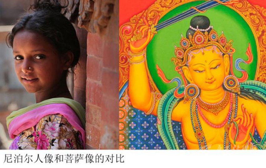 公元631年,松贊干布迎娶尼泊爾赤尊公主為妃,公主帶來的陪嫁里,就有一幅彩繪的“波哇”《帕巴魯給夏阿》。這幅“波哇”應該算作從尼泊爾傳入吐蕃最早的唐卡了。此外,赤尊公主還帶來了一大批從事佛教藝術(shù)的尼泊爾工匠。尼泊爾藝術(shù)也就逐漸融入于西藏的壁畫和唐卡中,開啟了南亞風格的佛教藝術(shù)在藏地的初次興盛。