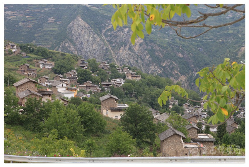 至此,似乎明了:在大渡河的東岸,在南北向布列的橫斷山脈(群)的夾金山系里,照常分布著眾多山的凹槽(山溝)——或深或淺,或?qū)捇蛘较虿欢?;而麥崩鄉(xiāng)所轄的村莊,幾乎都位于山溝兩側(cè)比較平緩的山坡臺(tái)地上。比如,昌昌村與對(duì)面山上的景點(diǎn)之間,就隔著一條大溝;昌昌村與下火地村之間,也隔著一條大溝;下火地村與景點(diǎn)所在的那座山,也隔著一條大溝了。