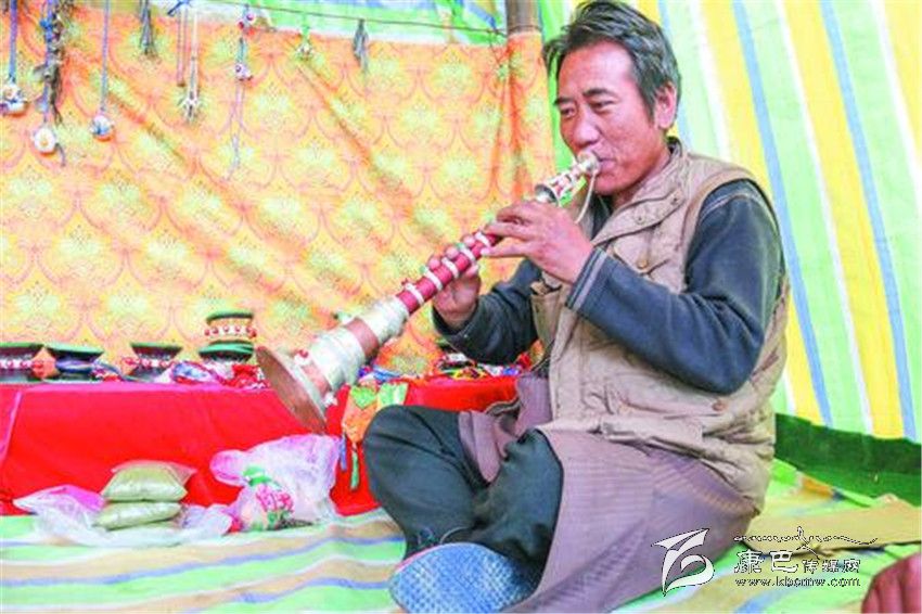 在河坡一代,像根秋丹貞、伍金這樣的手工藝人還有很多很多。其麥一家和根秋丹貞家一樣,也是主要制作佛器,在他的記憶里,爺爺、父親、叔叔、伯伯都是制作藝人,而自己家到底有多長的制作歷史,連他都說不清楚。51歲的扎西次仁這幾天有點(diǎn)忙,聽說噶陀寺最近要舉行法會,而以法器制作為主的他,早早的就在噶陀寺的臨時(shí)商點(diǎn)支起了“小賣部”,在這里叫賣自己家的精品法器,嘎烏、計(jì)數(shù)器、法號等等讓記者看得應(yīng)接不暇。