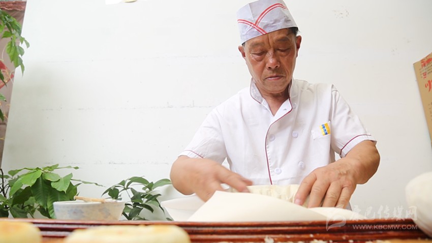 具體制作步驟分為做餡、起酥、做點(diǎn)心皮、制作酥皮、揉搓成坯、烤制等六道工序。其最具特色的“酥皮”,烹制技藝尤為精細(xì),需經(jīng)起酥、制皮、制酥皮多個環(huán)節(jié),在制作中,首先用精制面粉加熬制好的豬油適合比例混合后反復(fù)揉搓,并制成長方形面團(tuán)備用;隨后用面粉加豬油,加入沸水晾曬至稍低溫度時反復(fù)鞣制一個小時,直到拉扯面團(tuán)不粘手且發(fā)出清脆的響聲;最后還要將醒發(fā)的面團(tuán)分為五錢重,包裹三錢的“起酥”,搟至長條形,然后裹成圓柱形,左右對折,一層層折疊、壓緊,再舒展。這樣重復(fù)幾次,能形成幾十層,酥皮薄如蟬翼,沾水即化。