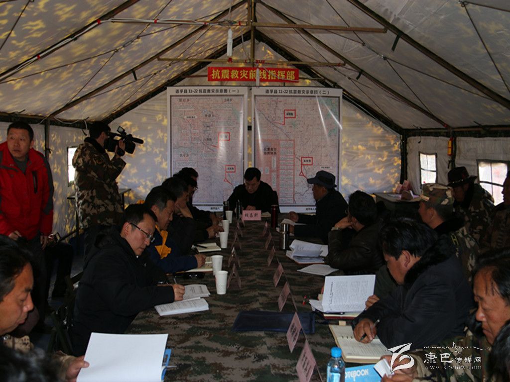 在前線指揮部,胡昌升主持召開前指工作專題會議,傳達了省委書記王東明和省長魏宏到我州地震災區(qū)調研指示精神,聽取前線指揮部辦公室和營地各單位、康定縣、道孚縣關于抗震救災工作的匯報。