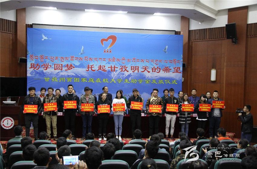 州政府聯(lián)系副秘書長,州教育局、州財政局、州紅十字會、州民政局、州扶貧移民局、廣東對口援建辦、州總工會、團(tuán)州委及西南民相關(guān)負(fù)責(zé)人,甘孜州籍在成都市區(qū)高校就讀的受助學(xué)生代表和部分在西南民大就讀的甘孜州籍學(xué)生參加發(fā)放儀式。