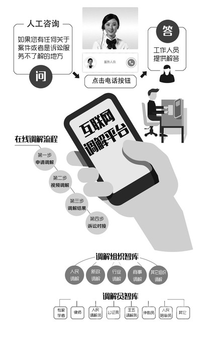 平臺怎么運行?據悉,調解平臺一端是法院及訴訟當事人;另一端是包括司法調解、行政調解在內的各種社會調解力量,力爭實現(xiàn)同步錄音錄像、調解進程監(jiān)督、用戶評價的一體化運行,最終實現(xiàn)全國范圍內的調解資源共享。