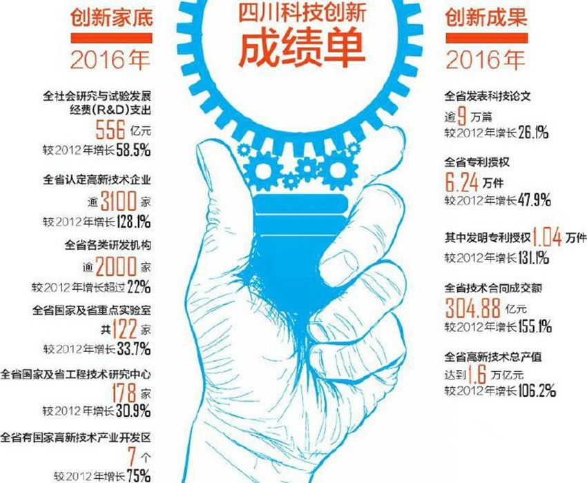 從獲獎數(shù)量看,國家科學技術進步獎達136項,占四川所獲獎項數(shù)八成以上。此類獎項主要針對在應用中取得重大經(jīng)濟效益或社會效益的科技成果?!芭c經(jīng)濟發(fā)展結合緊密,是四川所獲獎項的一大特點?!笔】萍紡d相關負責人介紹,以獲國家科學技術進步獎二等獎的“古老碳酸鹽巖勘探理論技術創(chuàng)新與安岳特大型氣田重大發(fā)現(xiàn)”為例,其成功攻破海相碳酸鹽巖中天然氣發(fā)現(xiàn)、開采難題,可帶動地區(qū)GDP增加逾1300億元。
