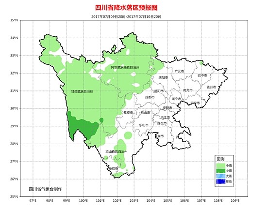 10日晚上到11日白天:盆地各市晴間多云,其中北部部分地方有分散性陣雨或雷雨;川西高原多云間陰天,大部分地方有陣雨或雷雨,其中甘孜州西南部有中雨,攀西地區(qū)晴間多云。