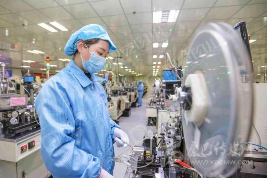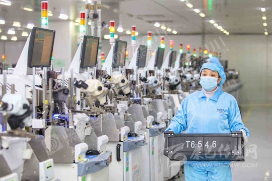 遂寧市經開區(qū)藍彩電子智能信息化車間,工人正在生產線開足馬力加緊生產。