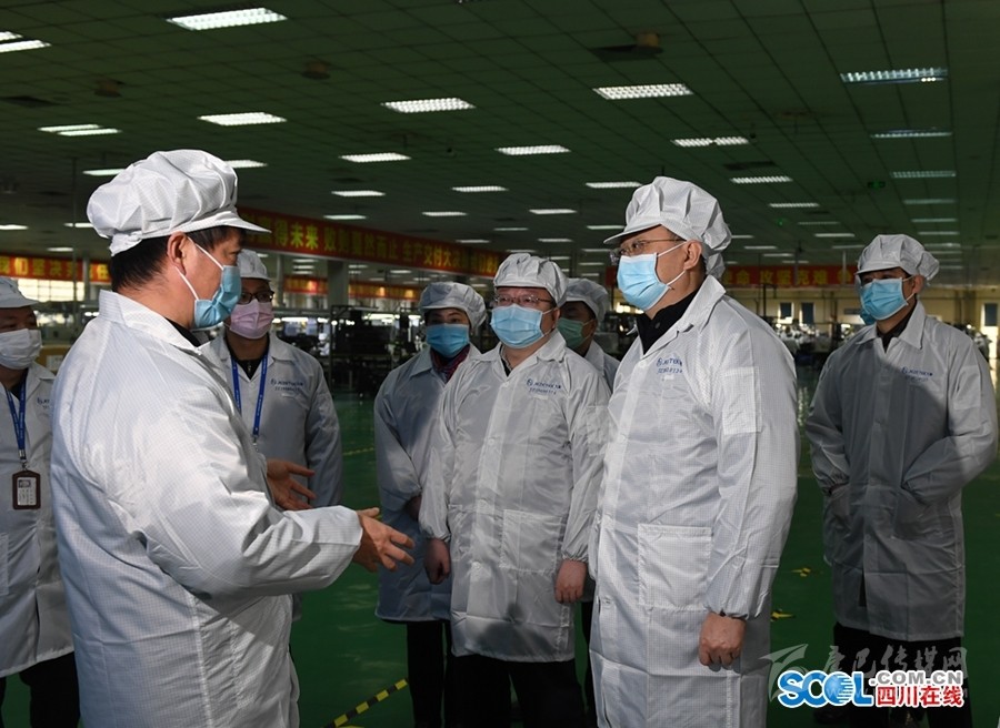 在四川九洲電器集團,尹力詳細了解企業(yè)落實疫情防控措施和復工復產(chǎn)情況。