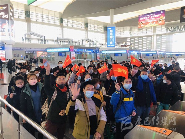 11:30分,D4755次返崗專列緩緩啟動。 站臺上的,前來送行的省農(nóng)民工服務中心工作人員們使勁揮起了雙手。車廂里,有的農(nóng)民工揮起了印有“一路平安”的小紅旗,有的隔著車窗豎起了大拇指……這讓省人社廳返崗服務專班交通保障組組長、省農(nóng)民工服務中心副主任秦家雷眼眶濕潤。秦家雷介紹,D4755次返崗專列的組織工作于2月18日開展,通過人社、交通、衛(wèi)健、鐵路等部門系統(tǒng),以及全省各市(州)、縣、鎮(zhèn)、村的大力配合,在不到兩天時間內(nèi),完成了917名返崗人員的摸排、健康體檢、車票購買諸多事項,充分體現(xiàn)了各系統(tǒng)各部門對農(nóng)民工的關心關愛,對復工復產(chǎn)抗擊疫情的努力和信心。