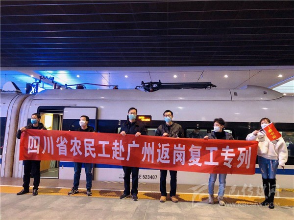2月20日上午11:30,滿載著917名川籍農(nóng)民工的D4755次返崗專列,從成都東出發(fā)一路駛往廣州南。這是今年春節(jié)后我省首趟開往廣東省的農(nóng)民工返崗專列,也是我省與廣東在新冠病毒疫情期間勞務協(xié)作共識達成后,開行的首趟農(nóng)民工返崗專列。此次專列開行,極大滿足了疫情期間我省農(nóng)民工外出務工需求,同時也為廣東省企業(yè)復工復產(chǎn)提供了勞動力支持。此趟專列票務費用由廣東省人社廳承擔,農(nóng)民工免費乘坐。