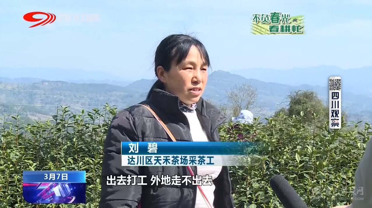 達(dá)川區(qū)天禾茶場(chǎng)采茶工劉碧:我們今年這個(gè)疫情期間出去打工外地走不出去,所以說(shuō)我們聽(tīng)了茶場(chǎng)招工,我們就到茶場(chǎng)找工作,掙點(diǎn)錢(qián),賺點(diǎn)生活費(fèi)。