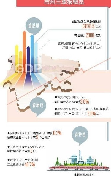 從增速看,宜賓、雅安、綿陽、廣元4市增速“破3”,宜賓達(dá)到3.3%;上半年一度負(fù)增長(zhǎng)的4個(gè)市州也全面扭轉(zhuǎn)下滑勢(shì)頭,前三季度增速全部轉(zhuǎn)正。
