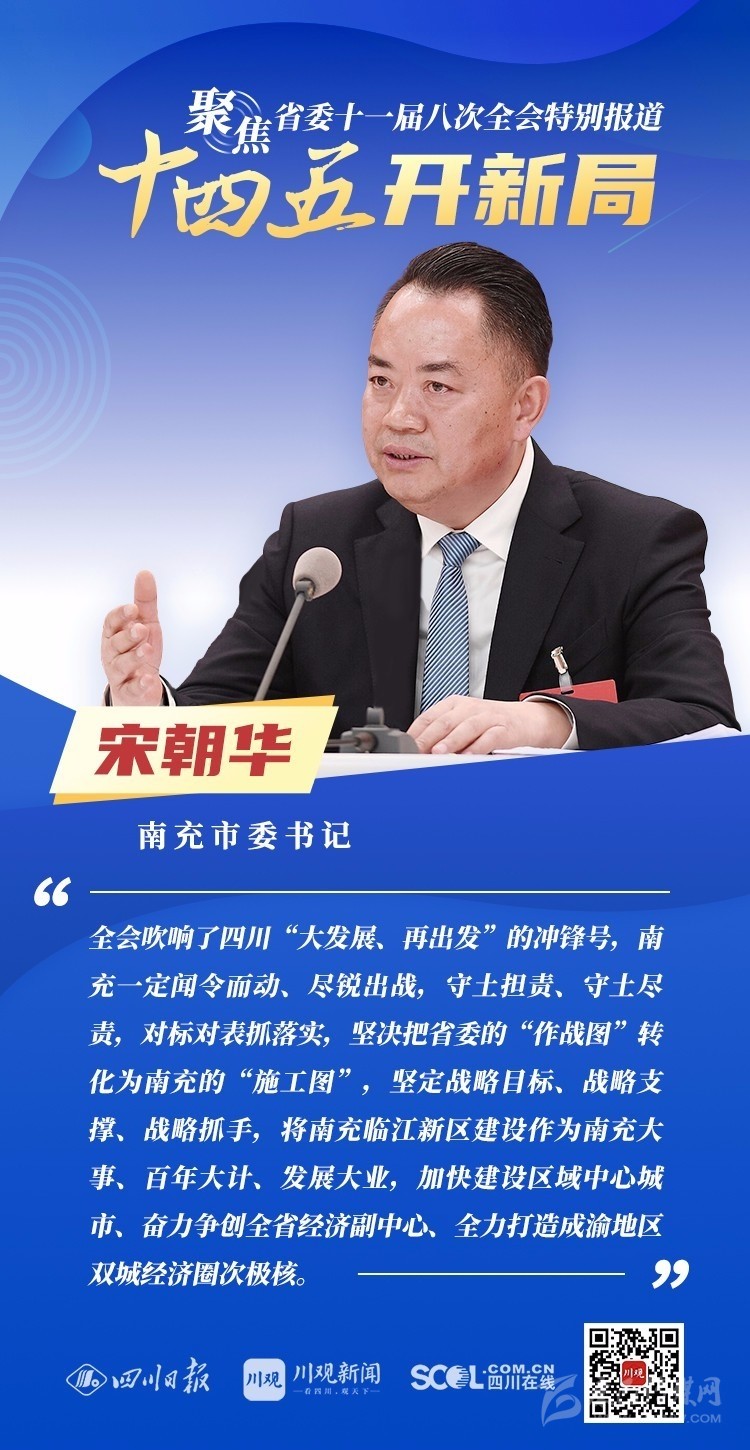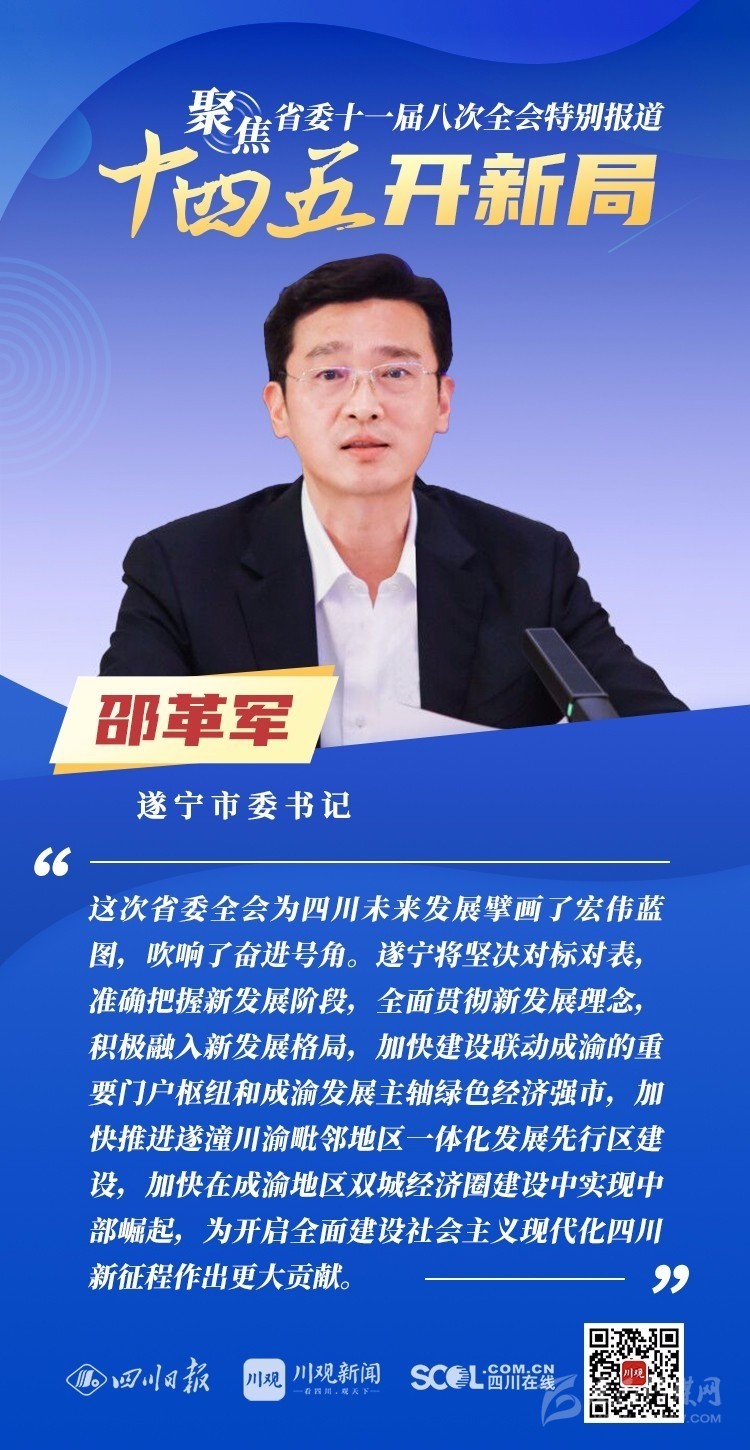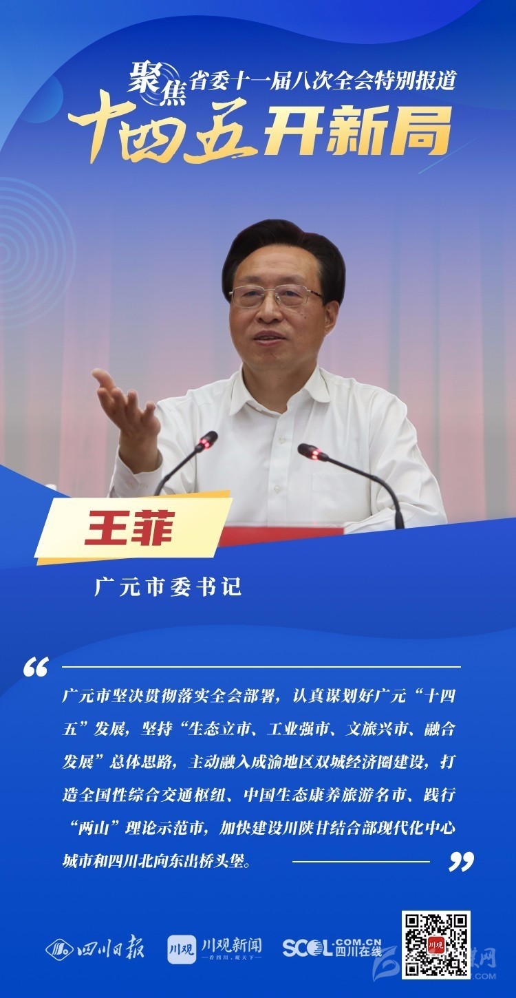 12月3日,中共四川省委十一屆八次全會(huì)在成都開幕,全會(huì)將深入學(xué)習(xí)貫徹黨的十九屆五中全會(huì)精神,審議《中共四川省委關(guān)于制定四川省國(guó)民經(jīng)濟(jì)和社會(huì)發(fā)展第十四個(gè)五年規(guī)劃和二〇三五年遠(yuǎn)景目標(biāo)的建議(討論稿)》,為未來(lái)5年乃至更長(zhǎng)時(shí)期四川發(fā)展謀劃新藍(lán)圖 。