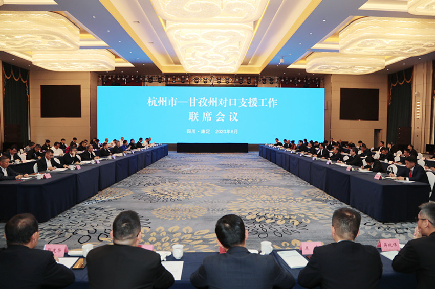 杭州市——甘孜州對(duì)口支援工作聯(lián)席會(huì)議現(xiàn)場。