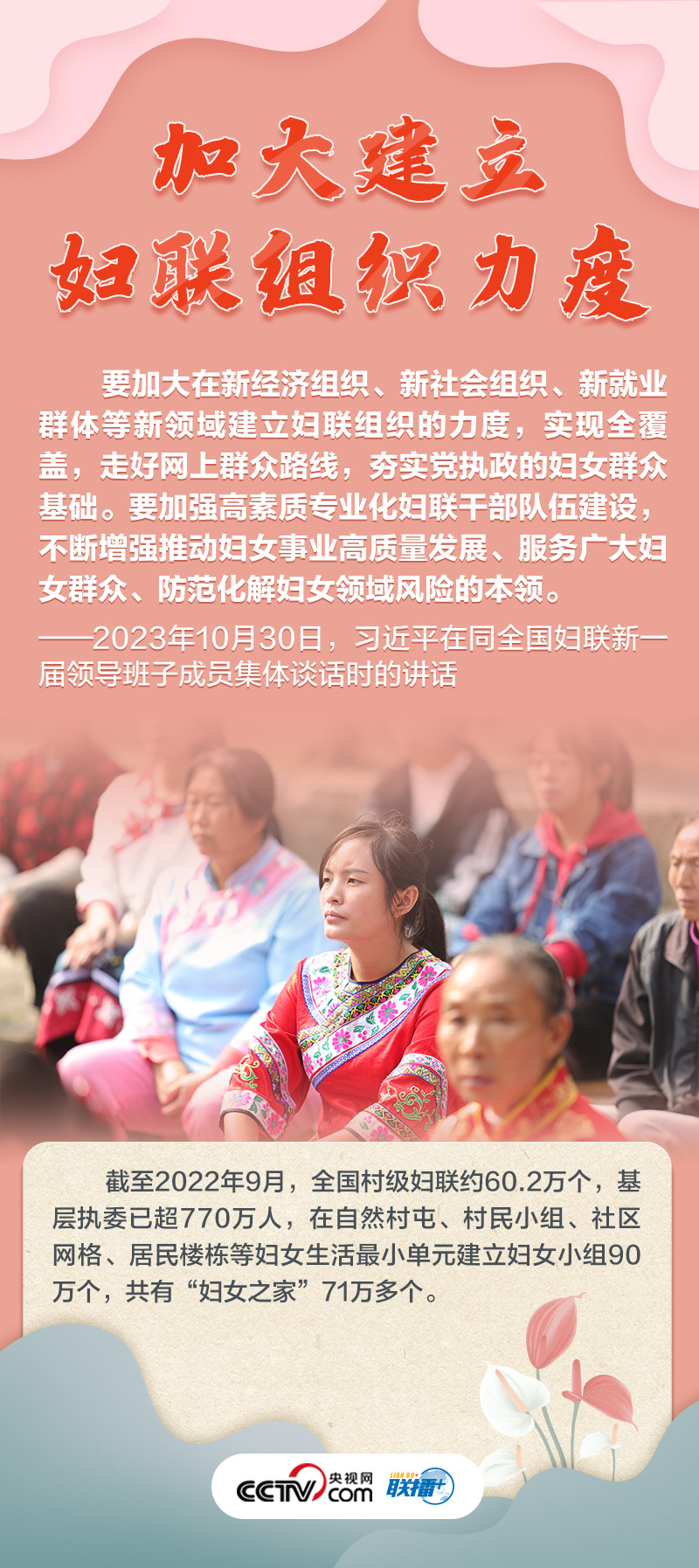 聯(lián)播+“婦聯(lián)是黨和政府聯(lián)系婦女群眾的橋梁紐帶?!?0月30日,習(xí)近平總書(shū)記同全國(guó)婦聯(lián)新一屆領(lǐng)導(dǎo)班子成員集體談話(huà)并發(fā)表重要講話(huà),高度肯定巾幗力量,并為新形勢(shì)下婦女事業(yè)和婦聯(lián)工作發(fā)展指明方向。