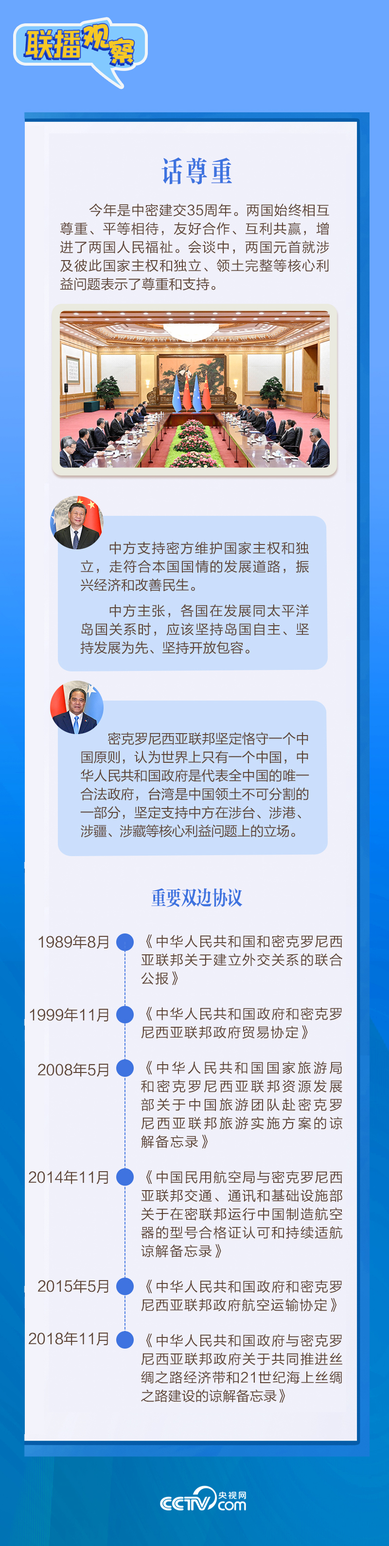 聯(lián)播+應習近平主席邀請,密克羅尼西亞聯(lián)邦總統(tǒng)韋斯利·西米納于4月5日至12日對中國進行國事訪問。4月9日下午,習近平主席在北京人民大會堂同西米納總統(tǒng)舉行會談,就雙邊關(guān)系發(fā)展及共同關(guān)心的問題深入交換意見。雙方會談哪些細節(jié)值得關(guān)注?央視網(wǎng)《聯(lián)播觀察》帶您了解。