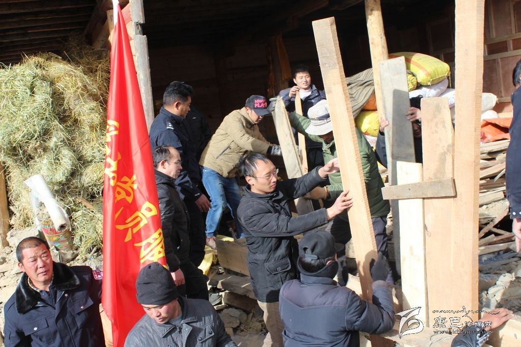 結(jié)對干部幫助道孚縣中古村災民搶救財產(chǎn)。