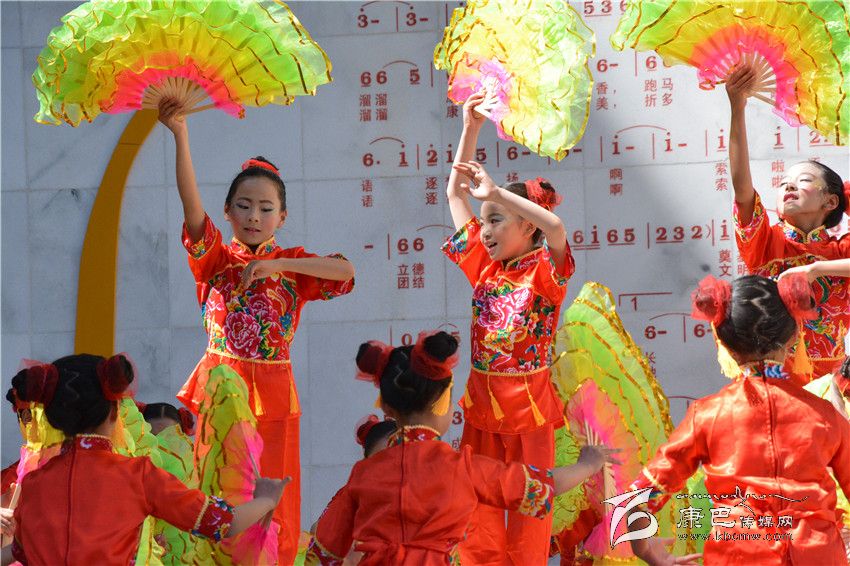 甘孜鎮(zhèn)雙語幼兒園幼兒表演扇舞。
