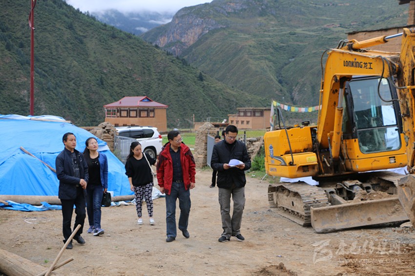 領(lǐng)隊文萬春、副領(lǐng)隊郭敘雷在德麥巴村調(diào)研新村建設(shè)。