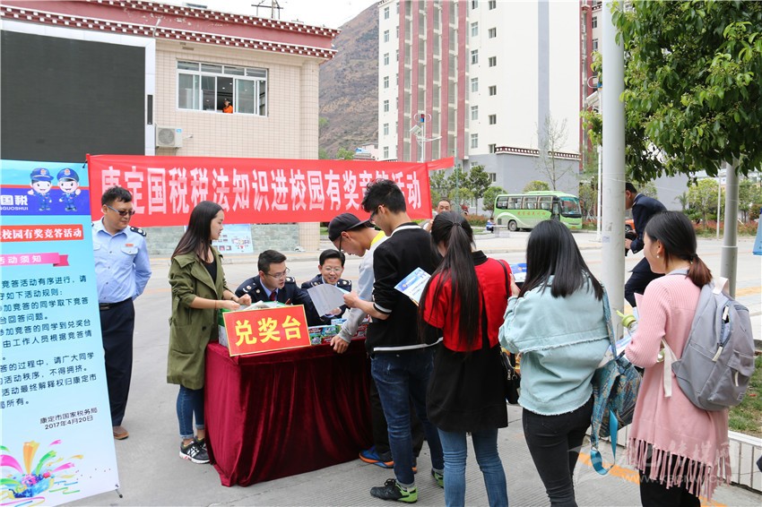 本網訊(吳海波 記者 張嗥)購物時商家不給發(fā)票,可以打哪個電話進行投訴?增值稅納稅人分為哪幾類?”這一系列與生活息息相關的稅法知識有獎答題,引來了眾多四川民族學院同學的熱情參與。4月20 日,康定市稅法宣傳月活動持續(xù)升溫,稅法宣傳首次走進高等院校。