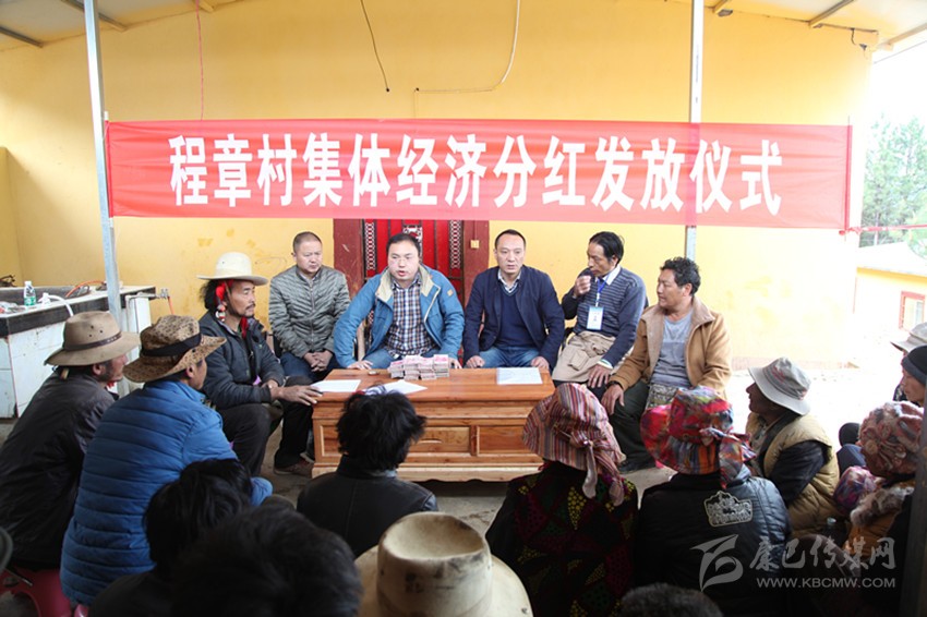 4月27日下午,雅江縣米龍鄉(xiāng)程章村熱鬧非凡、喜氣洋洋。 剛吃過(guò)午飯,村民們就齊刷刷地聚集到了村民活動(dòng)室,等待村集體經(jīng)濟(jì)首次分紅。