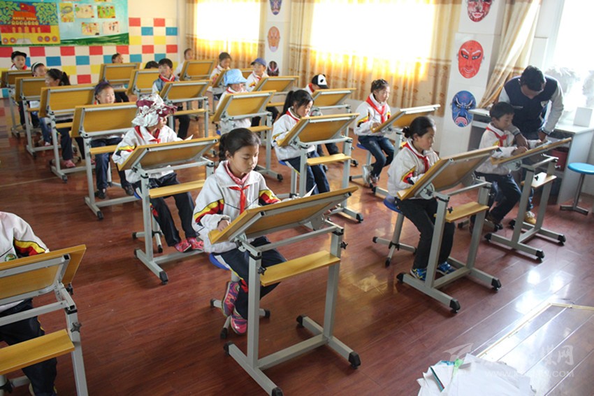 色達(dá)縣小朋友正在上美術(shù)課。