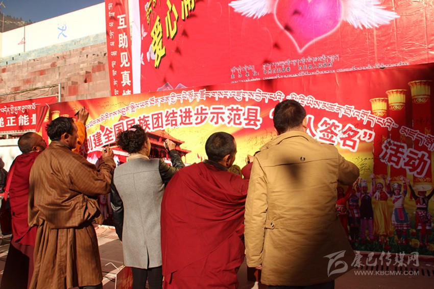 其實,在白玉,像澤稱降措這樣感人肺腑的故事絕非個案。采訪中,筆者細細梳理五年來白玉的創(chuàng)建舉措與成績,完全可以用“務實”“扎實”這四個字來形容。自2014年創(chuàng)建活動啟動以來,縣委、縣政府嚴格按照“三年創(chuàng)建、四年提升”要求,緊扣“八進活動、共建對子”兩個關(guān)鍵,聚焦“民族團結(jié)促發(fā)展、民族團結(jié)促穩(wěn)定、民族團結(jié)促民生”三大目標,采取“精準安排、精準施策、精心打造、精細管理”四項舉措,并通過層層簽訂目標責任書和層層落實創(chuàng)建標準、測評指標,進而形成了“黨委統(tǒng)一領導、黨政齊抓共管、部門各司其職、社會廣泛參與”的創(chuàng)建工作格局;采取“年度定方案、季度有督查、月月抓推進、層層重落實”的方式,通過召開專題會、動員會、現(xiàn)場會、督導會、匯報會等形式,抓問題、添措施、促整改、補短板、求提升,一系列動真碰硬的推進,使得創(chuàng)建工作由“虛”變“實”;按照“精準宣講、掛圖作戰(zhàn)、對單宣講、對村消號、定學式”的宣講思路,采取“縣到鄉(xiāng)、鄉(xiāng)進村、村入戶、寺廟與僧尼”四個面對面等方式,并結(jié)合常態(tài)化開展的“四下鄉(xiāng)”活動,廣泛學習宣傳黨的民族理論、宗教政策、法律法規(guī)以及各項惠農(nóng)惠民政策。五年來,全縣累計出動宣講服務人員1180人次,開展宣講宣教、“四下鄉(xiāng)”活動以及民族團結(jié)“八進”活動多達988場次,覆蓋基層干部、農(nóng)牧民群眾和及寺廟近8萬人次,發(fā)放各類宣傳資料2.3萬余份、圖書光盤4500余本(張),贈送各種書籍4130余冊,放映電影152場次;在主要街道、繁華路段、出租車頂屏、燈箱燈桿以及干線公路沿線堡坎,設置LED屏、宣傳牌、滾動標語和墻體標語,推送各類創(chuàng)建信息上萬余條,在各機關(guān)、單位、醫(yī)院、學校、寺廟、鄉(xiāng)鎮(zhèn)、村組(社區(qū))設置民族團結(jié)標語、宣傳櫥窗、展板和文化墻,推出各類宣傳欄2145個、宣傳展板 435個;在縣級宣傳平臺開設專欄,完成各類主題宣傳300余場次;舉辦創(chuàng)建“萬人簽名”、鍋莊節(jié)、演講比賽、籃球友誼賽、知識競賽、文藝演出等各類民族團結(jié)主題活動近20場,實現(xiàn)了創(chuàng)建宣講宣傳宣教全方位、多層面、立體式和廣覆蓋;切實將民族團結(jié)工作與脫貧攻堅、基層黨建、群眾工作、鄉(xiāng)村治理、依法治縣等有機結(jié)合,大力開展干群結(jié)對認親、干部聯(lián)寺聯(lián)僧、支部共建共創(chuàng)以及警民共建等活動;切實在廣大農(nóng)牧民群眾、幫扶援建隊伍、宗教寺院、學校師生、企業(yè)以及部隊中發(fā)現(xiàn)典型、宣傳典型,進而在全縣上下形成了“學先進、趕先進、當標兵”的濃厚氛圍;采取政策傾斜、整合項目、配套資金等措施,狠抓示范點規(guī)范化建設。目前,全縣所有鄉(xiāng)(鎮(zhèn))、縣級黨政機關(guān)、武警部隊,45%以上的村(社區(qū))、企事業(yè)單位和寺廟已成為民族團結(jié)進步示范地區(qū)或示范單位;……精準發(fā)力、持續(xù)給力的創(chuàng)建活動,有效形成了創(chuàng)建活動“人人參與、人人推動、人人負責、人人共享”的喜人局面。