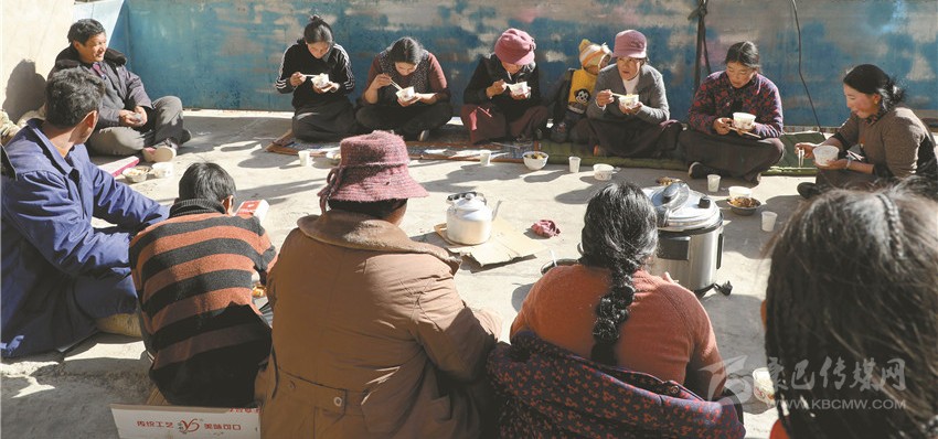“請(qǐng)注意腳下哈,不要絆倒了喲!你們把這趟搬了就過來吃午飯,等吃完飯后再搬。”筆者在金沙鄉(xiāng)八吉村采訪時(shí),親眼目睹了十幾個(gè)忙碌的身影穿梭在一頂帳篷與院壩之間。一經(jīng)打聽,原來是村民扎西多吉的親戚和鄰居在幫他搬運(yùn)柴火。