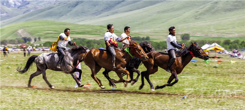 本網(wǎng)訊 傳說(shuō)中,甘孜縣絨壩岔是格薩爾王駟馬的地方。 6月24日,來(lái)自甘孜、德格、爐霍、道孚的218位騎手和馬匹參加了2019年的賽馬比賽,他們將在卡攻鄉(xiāng)境內(nèi)的草原上上演為期兩天的巔峰對(duì)決,為“馬迷”和游客們帶來(lái)一場(chǎng)“熱血賽事”。