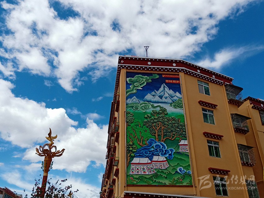 當(dāng)筆者一行走在巴塘縣城,墻體繪畫上“巴塘八景”躍然于上,“巴山積雪”“柳林較射”“桃園賞花”“板橋垂釣”“古桑抱石”“溫泉沐浴”“暖石回陽”“老柳夾槐”色彩豐富、構(gòu)思精巧,平淡無奇的墻面因?yàn)橐环r活的繪畫變得生活,一面墻一幅畫一個(gè)故事。街頭巷尾,十字路口的“大鵬蓮花燈”“九眼天珠燈”“走馬燈”高高懸掛展示巴塘風(fēng)貌。以“茶馬古道”為主題打造的“最美古鎮(zhèn)”,悠悠古韻講巴塘故事,古色古香顯巴塘韻味……