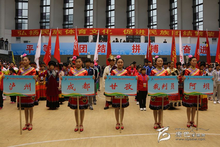 2014年11月4日—9日,四川省第十四屆少數(shù)民族傳統(tǒng)體育運動會在宜賓市隆重舉行。在此次民運會上,由138人組成的甘孜州代表團(tuán)代表112萬父老鄉(xiāng)親參加了本屆民運會射弩、民族式摔跤(格、北嘎、且里西、絆跤)、蹴球、押加、珍珠球、高腳競速、板鞋競速、陀螺、苗族手毽等9個競賽項目和競技類、技巧類、綜合類3個表演項目的比賽。