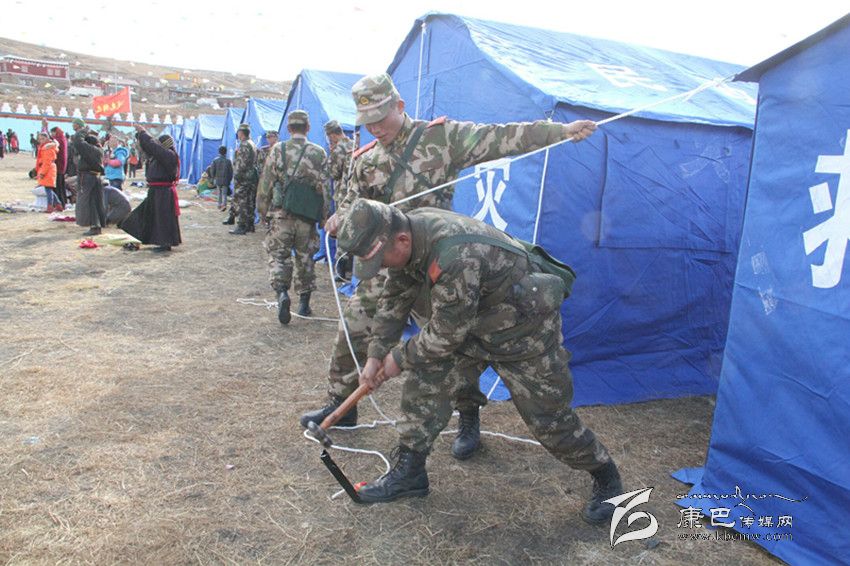 為受災群眾搭建帳篷。