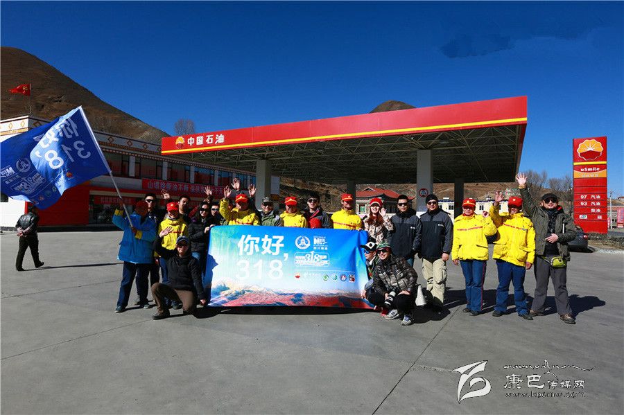 新都橋加油站全體員工與新華網(wǎng)318川藏線60周年全媒體行團(tuán)隊(duì)合影。