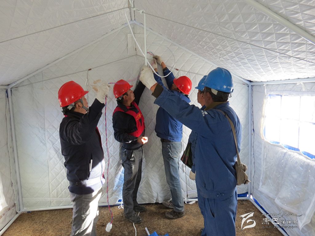 奪拉二村有4個(gè)變壓器臺(tái)區(qū),其中2個(gè)臺(tái)區(qū)為人員較多的木雅祖慶學(xué)校,地震使學(xué)校住宿樓變?yōu)槲7?,全校?000名學(xué)生轉(zhuǎn)移至學(xué)校空地上的安置點(diǎn)。為了讓安置點(diǎn)內(nèi)的受災(zāi)師生和應(yīng)急指揮中心盡快用上電,黨員突擊搶險(xiǎn)小分隊(duì)不僅要在安置點(diǎn)迅速安裝應(yīng)急照明設(shè)施,同時(shí)還要從圍墻和學(xué)校食堂的樓頂上重新布放近3段2公里長(zhǎng)的臨時(shí)電源線。學(xué)校圍墻因地震而搖搖欲墜,稍微用點(diǎn)力,墻、磚塊或水泥就會(huì)掉下來,面臨這一難題,公司黨總支沉著應(yīng)對(duì),迅速組織塔公供電所與新都橋供電所的黨員干部趕往震中,同時(shí)安排其余供電所的黨員干部迅速增援。先期到達(dá)的救援人員在余震不斷發(fā)生的情況下,對(duì)受損供電設(shè)備及線路進(jìn)行了緊急處理;在后期人員趕到后,公司黨總支迅速研究制定工作方案,科學(xué)分工:第一組黨員突擊搶險(xiǎn)隊(duì)負(fù)責(zé)隱患排查,第二組黨員突擊搶險(xiǎn)隊(duì)負(fù)責(zé)電線布放,第三組黨員突擊搶險(xiǎn)隊(duì)負(fù)責(zé)救災(zāi)帳篷的照明安裝。在三個(gè)小組隊(duì)員的共同努力下,用近三個(gè)小時(shí)的時(shí)間就解決了應(yīng)急指揮中心、醫(yī)療隊(duì)和臨時(shí)安置點(diǎn)的照明安裝這一難題。