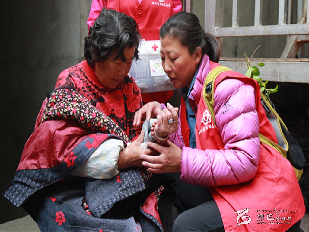 10月11日,由州婦聯(lián)牽頭,康定精英教育、岡拉梅朵藏區(qū)公益事業(yè)發(fā)展中心的志愿者在公主橋社區(qū),為10名高齡困難母親免費(fèi)發(fā)放了價(jià)值三千余元的“健康包”(便攜式血壓儀、溫度計(jì)、碘伏、創(chuàng)可貼、棉簽等物品。)為老人們?cè)敿?xì)講解“健康包”的使用方法。圖為志愿者為困難母親測(cè)血壓。(王曉燕 攝影報(bào)道)