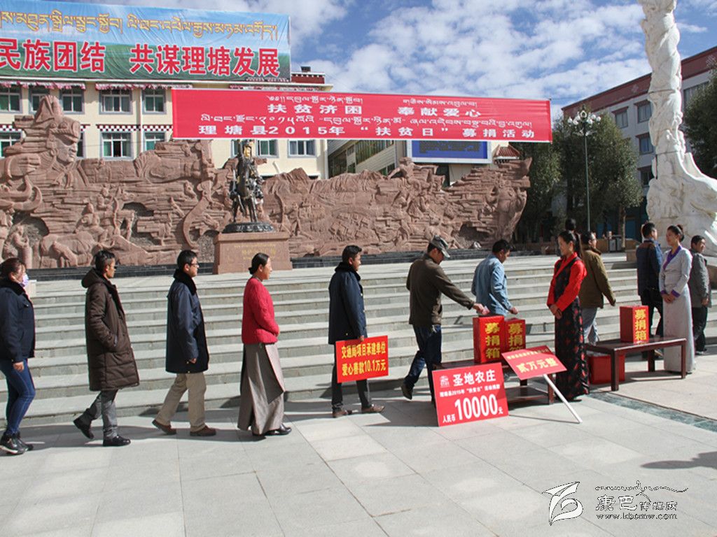 本網(wǎng)訊(葉強(qiáng)平 文/圖)10月17日,在紀(jì)念全國第二個(gè)“扶貧日”之際,理塘縣縣級機(jī)關(guān)干部職工、高城鎮(zhèn)農(nóng)牧民、駐軍官兵、中小學(xué)生、寺廟僧侶、個(gè)體工商戶、公司企業(yè)代表來到縣城格薩爾廣場,為扶貧濟(jì)困奉獻(xiàn)一份愛心。