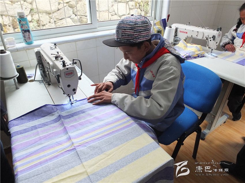 在縫紉實(shí)訓(xùn)班里,扎西冬珠正聚精會(huì)神地為床單鎖邊,他動(dòng)作嫻熟,不一會(huì)兒功夫一張完整的床單在他靈巧的手中成型。據(jù)學(xué)校負(fù)責(zé)人介紹,學(xué)習(xí)縫紉的學(xué)生相對(duì)來(lái)說(shuō)較多,有20多名,他們先從縫制簡(jiǎn)單的床單、被套開(kāi)始做起,逐步掌握各類(lèi)衣、褲、民族服裝等的裁剪、縫制技術(shù)。產(chǎn)品完成后,他們爭(zhēng)取州、縣相關(guān)部門(mén)和學(xué)校的支持,準(zhǔn)備將全州寄宿制學(xué)生的床上用品及校服訂單拿下。