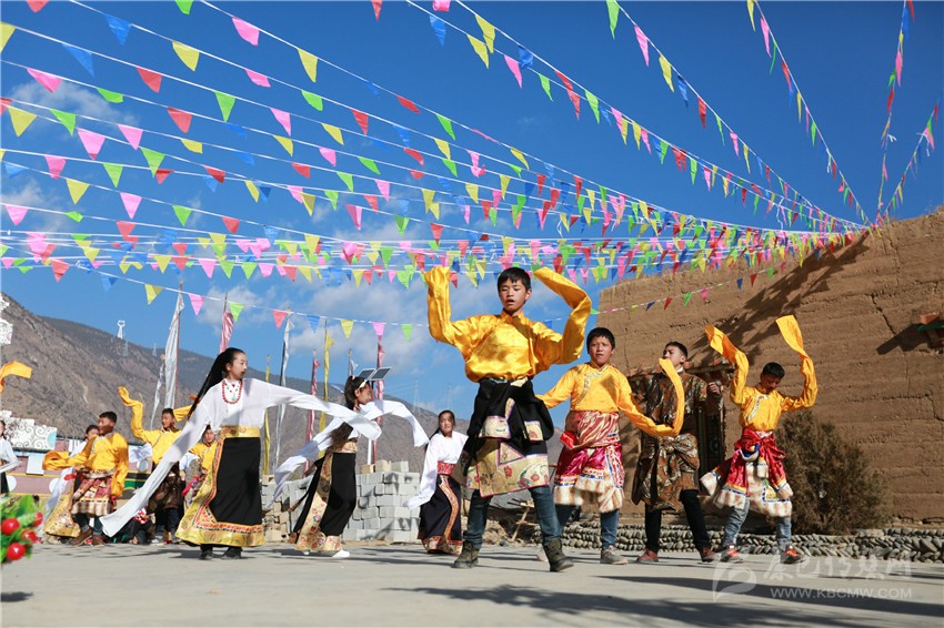 鄉(xiāng)城縣布機村群眾自編歌舞慶新年。