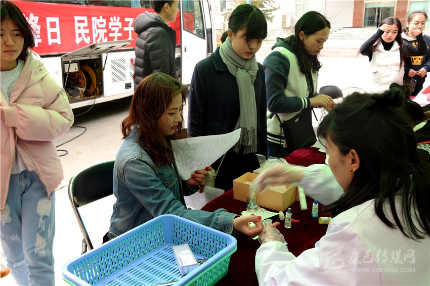 2月中旬,學(xué)院尚未開(kāi)學(xué),大學(xué)生志愿服務(wù)總隊(duì)便開(kāi)始了本次活動(dòng)的策劃和籌備,主動(dòng)與州中心血站進(jìn)行銜接,在學(xué)院內(nèi)運(yùn)用網(wǎng)絡(luò)新媒體等方式,向全院師生作無(wú)償獻(xiàn)血宣傳動(dòng)員。3月4日一大早,志愿者們就來(lái)到了指定地點(diǎn)做好準(zhǔn)備工作。獻(xiàn)血車(chē)到達(dá)后,志愿者們有序地為獻(xiàn)血的同學(xué)提供咨詢、指導(dǎo)填表、引導(dǎo)獻(xiàn)血和派發(fā)獻(xiàn)血證和紀(jì)念品等服務(wù)。本該是陽(yáng)春三月,但春天卻遲遲不肯到來(lái),凍雨仍然淅淅瀝瀝下個(gè)不停,前來(lái)獻(xiàn)血的同學(xué)不顧寒風(fēng)凜冽,在征詢處和獻(xiàn)血車(chē)外排起了長(zhǎng)長(zhǎng)的隊(duì)伍。許多同學(xué)距離上一次獻(xiàn)血還沒(méi)滿半年時(shí)間,也加入了獻(xiàn)血者的隊(duì)伍,血站工作人員只能委婉拒絕。面對(duì)這些熱心的獻(xiàn)血者,在大學(xué)生志愿者服務(wù)總隊(duì)記者的采訪中,一位同學(xué)笑著回答:“獻(xiàn)血既可以幫助他人,對(duì)自己健康也有好處,何樂(lè)而不為呢?”她揮著小拳頭:“再說(shuō)了,今天是雷鋒日,我也要爭(zhēng)當(dāng)民院小雷鋒!”